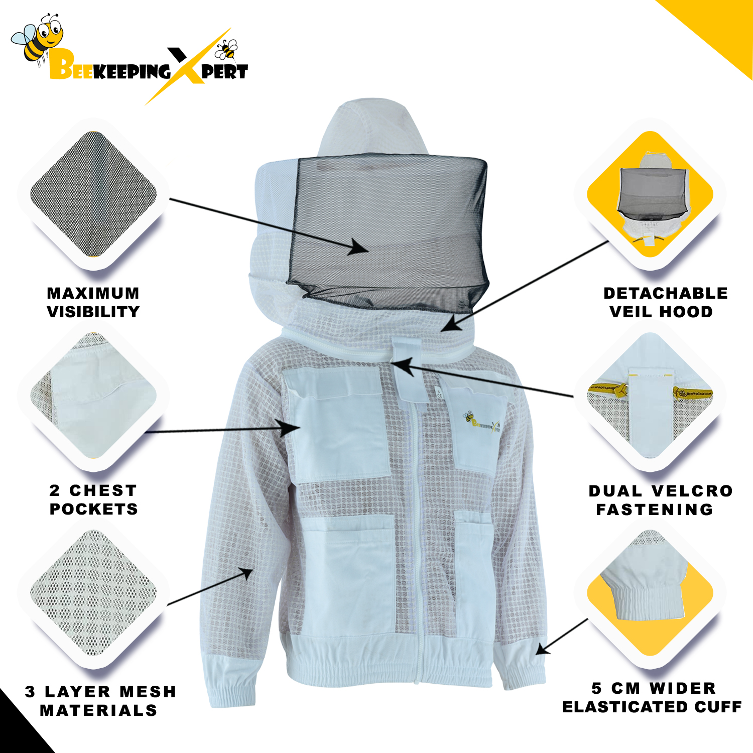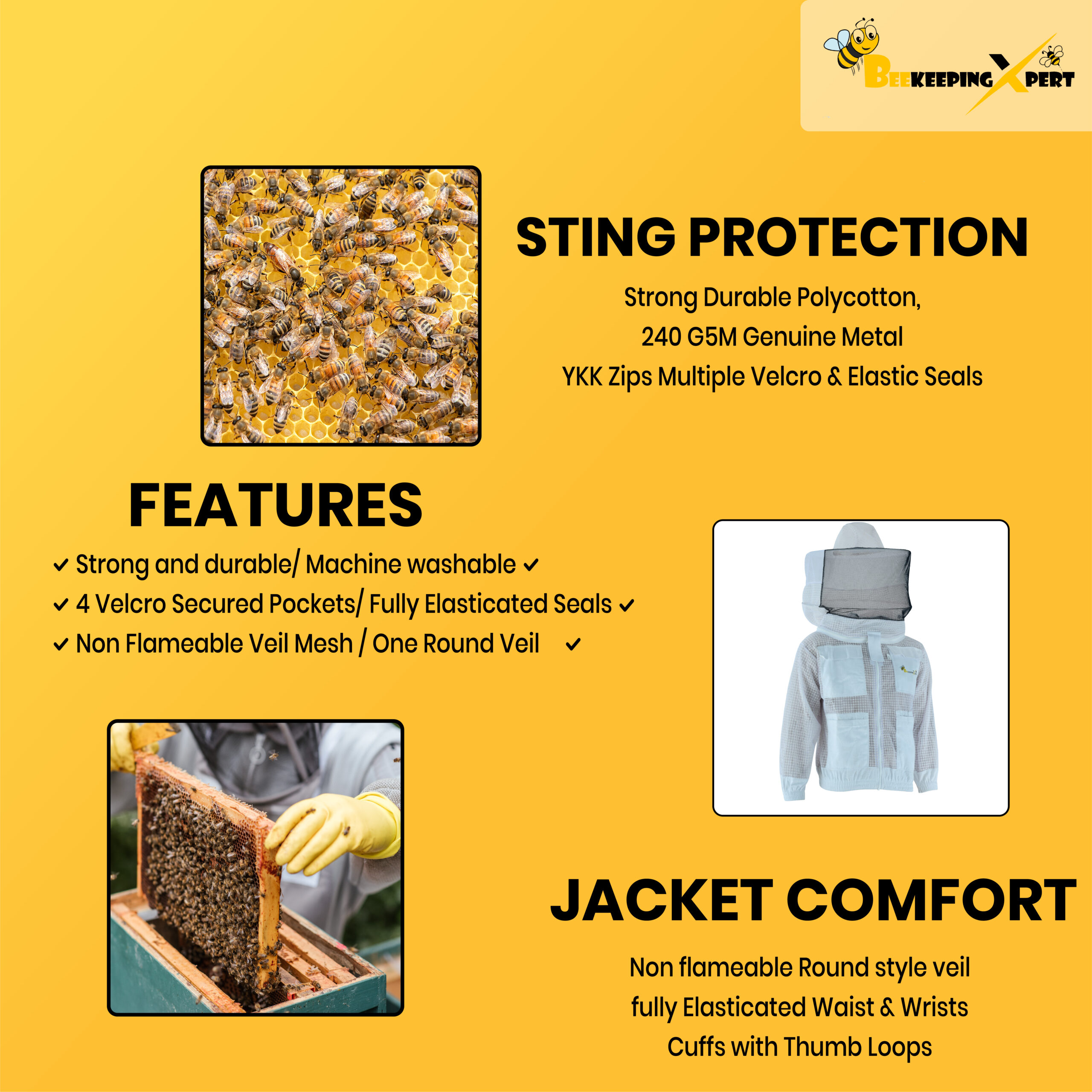 This versatile, unisex beekeeping jacket is made with a 3-layer ultra-ventilated mesh that provides excellent airflow to keep you cool throughout your beekeeping sessions. Whether you are a professional beekeeper or a hobbyist, this jacket is designed to meet your needs by offering both comfort and safety. The round veil provides full facial protection from bee stings while allowing you to maintain a clear line of sight as you work. The sting-proof construction adds an extra layer of security, so you can feel confident and safe when tending to your hives. Made with breathable, lightweight material, this jacket ensures that you stay comfortable even in warm weather. The sleek white design adds a touch of professionalism and ensures that you can work for hours without feeling overheated or restricted. Designed for both men and women, this jacket is perfect for beekeepers looking for a practical, protective, and stylish solution.